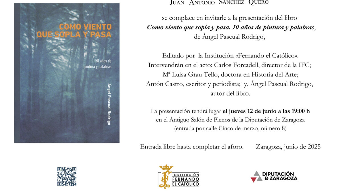 La presentación tendrá lugar el jueves 12 de junio a las 19:00 h en el Antiguo Salón de Plenos de la Diputación de Zaragoza (entrada por calle Cinco de marzo, número 8)