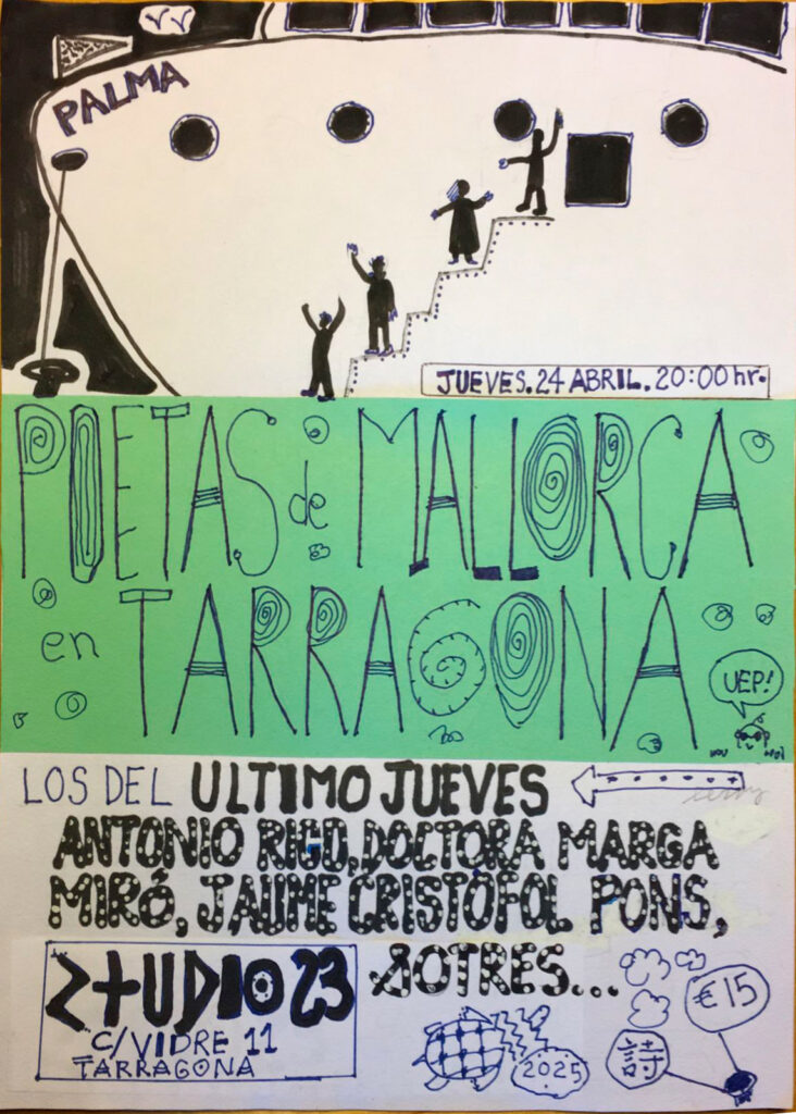 Si os pilla por ahí, será el próximo jueves día 24 y a partir de las 20:00 en Studio23, C/ Vidre, 11, Tarragona.